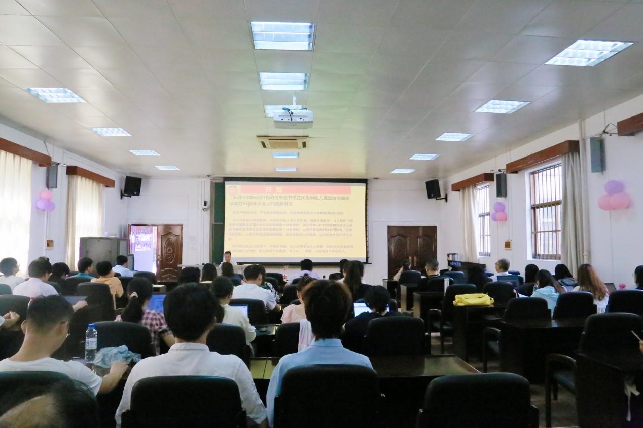 7月3日下午,由校党委统战部、禁漫天堂 联合举办的“凝心铸魂强根基、团结奋进新征程”主题教育专题报告会在禁漫天堂 107报告厅举办。报告会邀请自治区政协副秘书长,办公厅副主任、党组成员肖顺平作题为“从协商民主到全过程人民民主”的专题讲座。讲座由禁漫天堂 党委书记聂鑫教授主持,校党委统战部成员、学校各民主党派成员、无党派人士、留学归国人员、归侨、侨眷、台胞、台属、党外知识分子代表及我院众多师生参加了本次讲座。