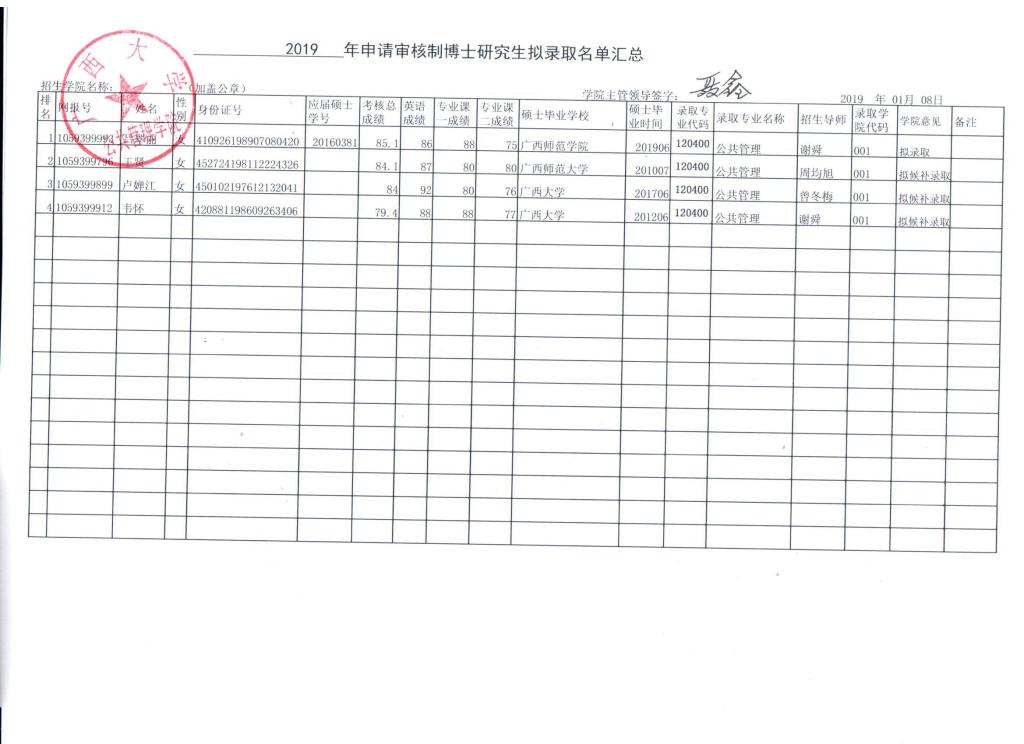 2019年审核制博士研究生拟录取名单汇总