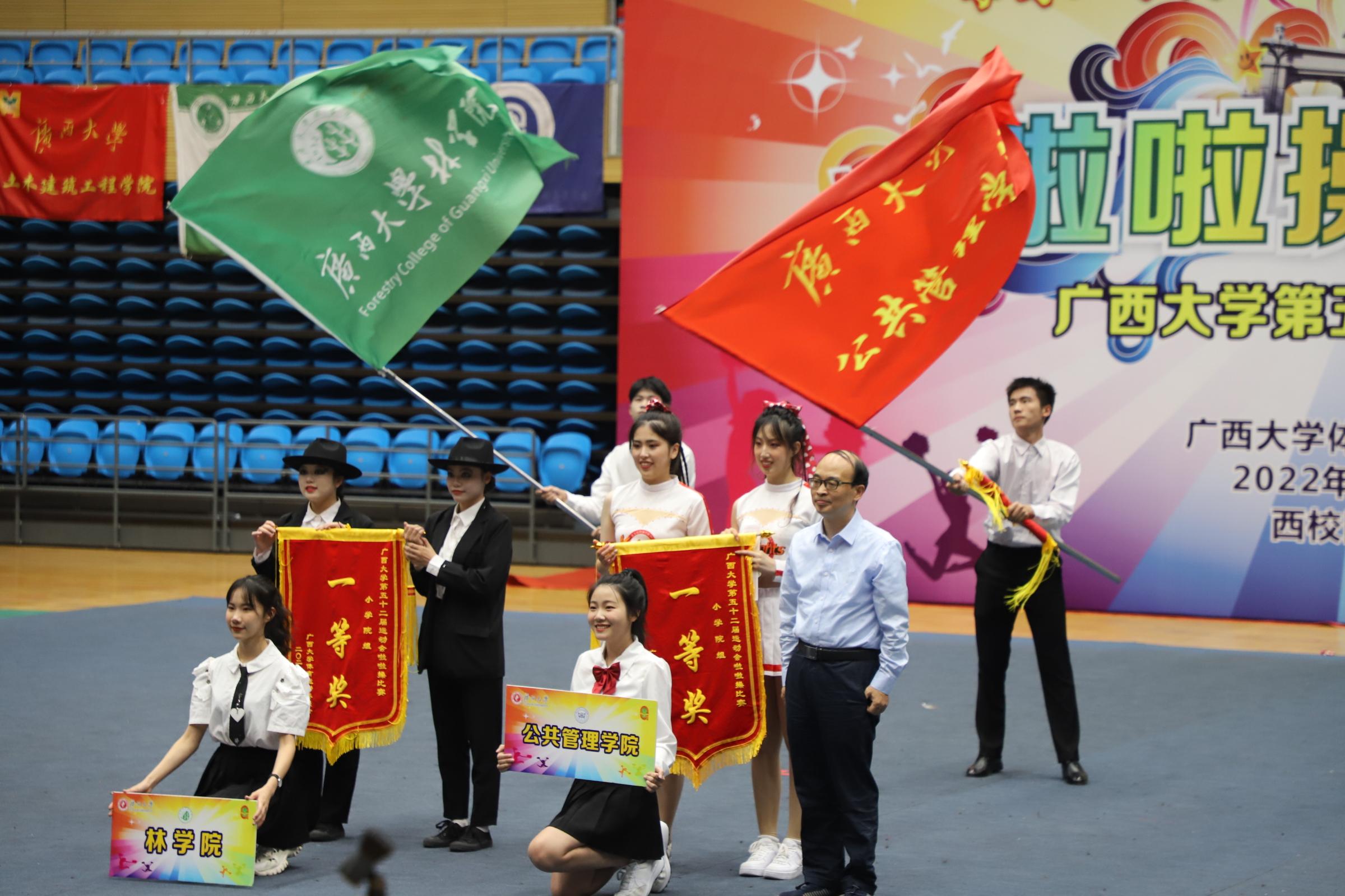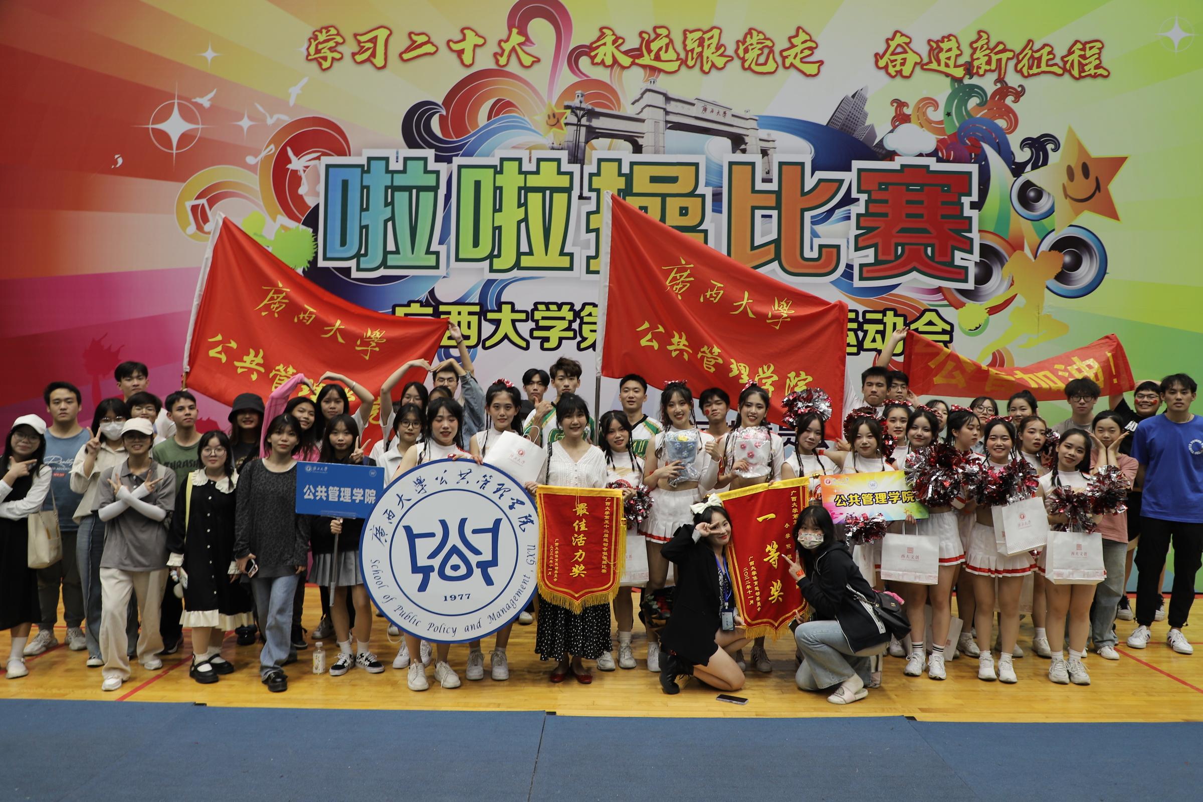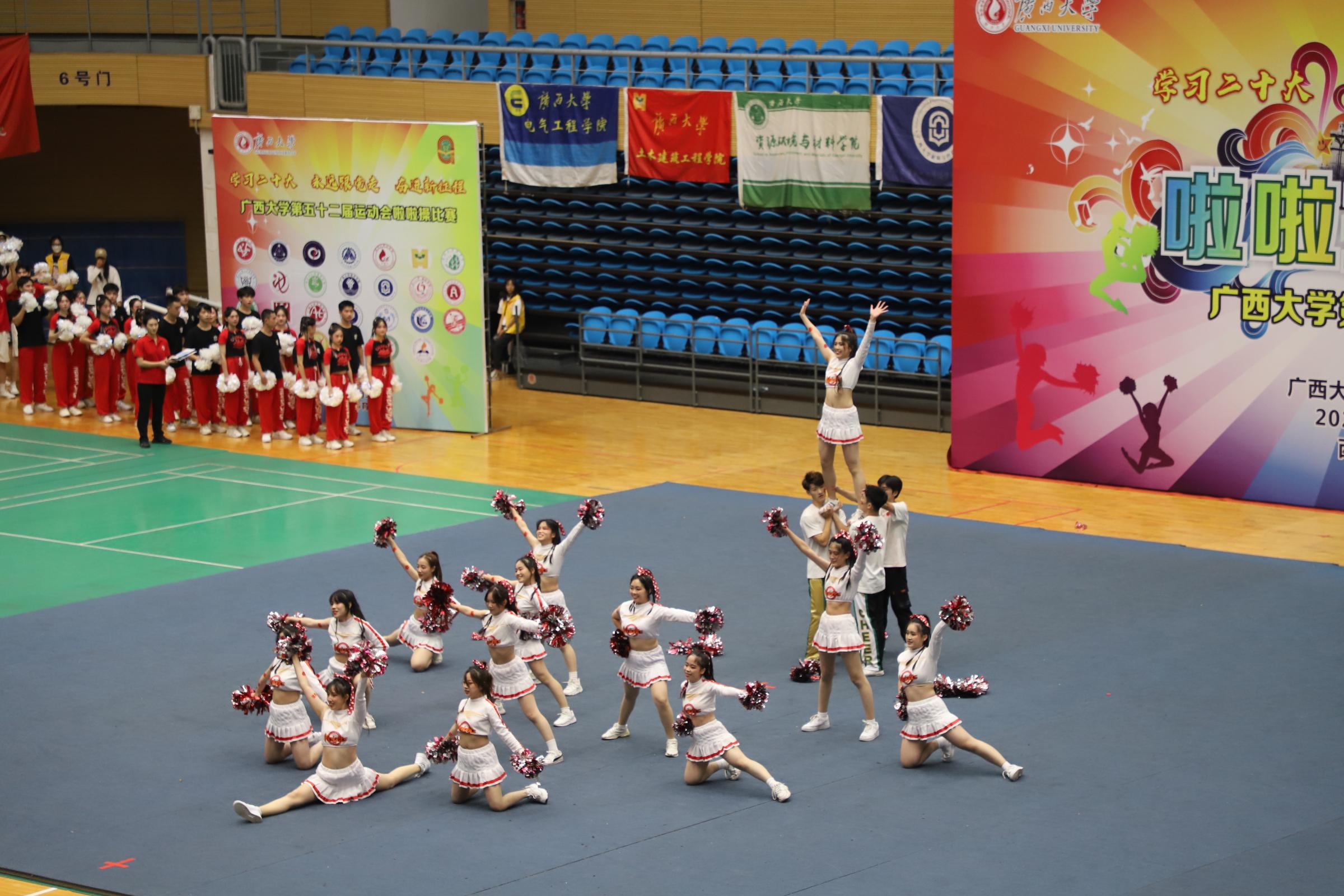 11月6日下午,广西大学第五十二届运动会啦啦操比赛于西综合体育馆拉开比赛序幕,分为大学院组和小学院组,禁漫天堂 代表队带着一支《Lucky Strike》闪亮登场,最终以512分的成绩征服全场,荣获小学院组“一等奖”和“最佳活力奖”。