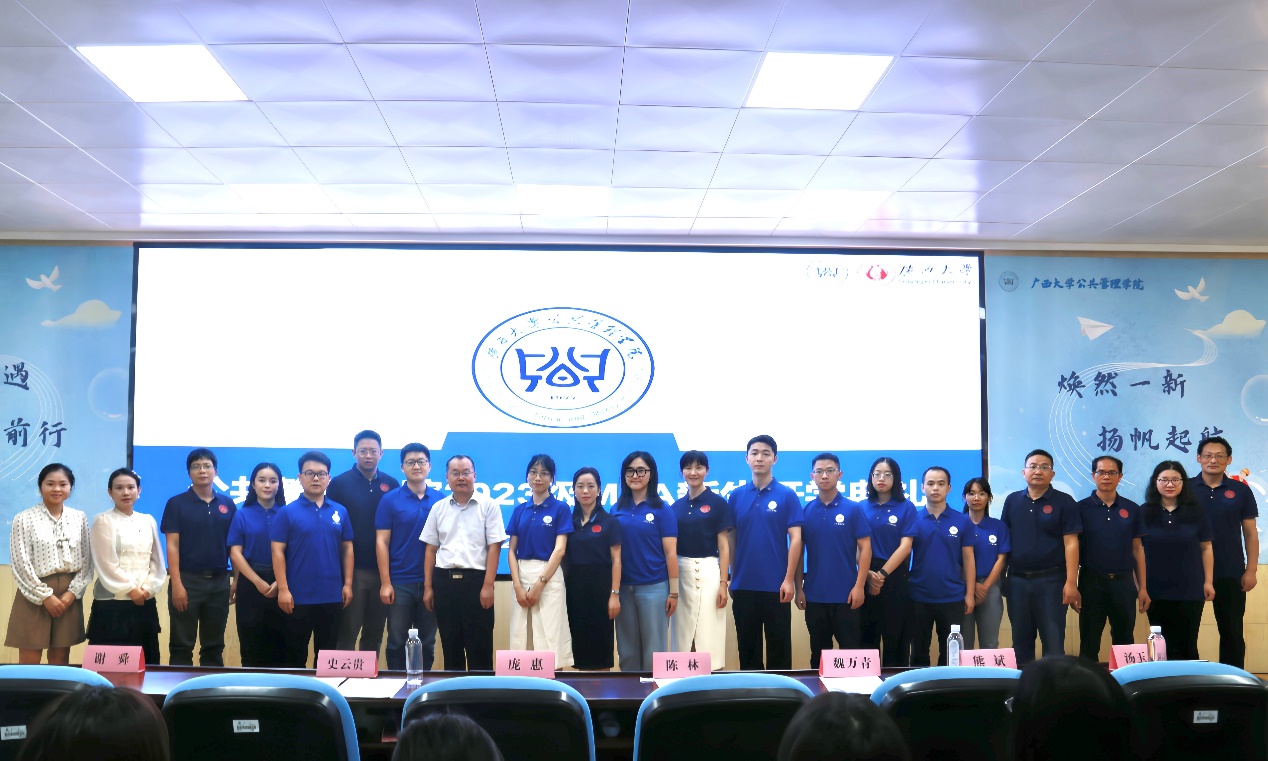 广西大学MPA教育中心副主任熊斌,公共政策系主任汤玉权,劳动与社会保障系主任覃志敏,公共政策系副主任陈璟浩,教师代表陈潇潇,MPA中心秘书处钟革秋,研究生办秘书黄登攀,院辅导员侯俊丽及全体新生参加典礼。
