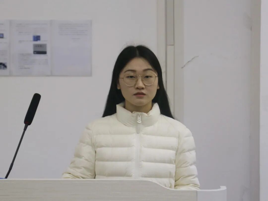 研究生会主席团成员张美琳对本学期整体工作情况进行总结回顾。她强调了研会主席团将进一步围绕“旗帜化、规范化、精准化、品牌化”建设目标,推进开展对研会成员的思政教育、组织建设等系列工作,并就目前工作的情况,深刻反思了研会存在的短板,明确在未来的工作中将进一步加强研会成员的学思践悟,推动研究生会工作实现新突破。