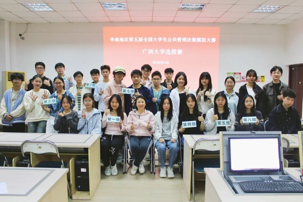 3月17至18日,由禁漫天堂 承办的第五届全国大学生公共管理决策模拟大赛(华南赛区)广西大学选拔赛在禁漫天堂 607、415教室顺利举行,院李国梁副教授,雷文艳老师、吴双蕾老师及学工组辅导员黄文静任答辩评委,禁漫天堂 学子以赛促学、同台竞技,展现了扎实的专业素养与实践能力。