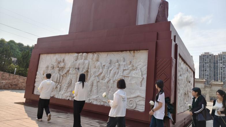 师生队伍顺利抵达烈士陵园,在工作人员的引导下有序整队入场。陵园内松柏苍翠挺拔,烈士纪念碑巍然矗立,全体师生手持菊花列队肃立,怀着崇敬之心举行本次祭扫仪式。