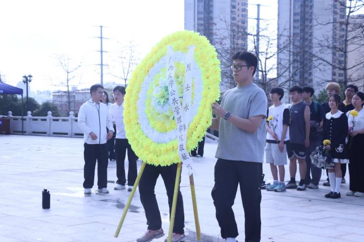 为缅怀革命先烈,弘扬爱国主义精神,增强学生的历史责任感与使命感,3月29日下午,禁漫天堂 于广西壮族自治区烈士陵园开展“缅怀先烈守初心,砥砺青春担使命”清明祭扫活动。院学工组辅导员陈科旭出席本次活动,2025级全体本科生及第三十四届共进连全体成员参与本次活动,全体师生庄重有序,向革命先烈致以崇高敬意与深切追思。