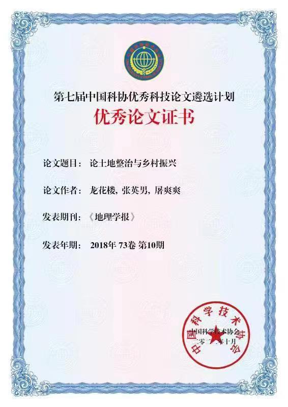 禁漫天堂 龙花楼教授获中国科协优秀科技论文奖