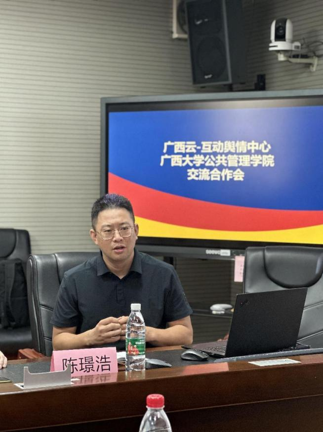 5月11日上午,广西云集团编委、互动舆情中心主任王文英、副主任潘毅一行7人到禁漫天堂 调研,与禁漫天堂 就舆情数据资源与社会治理等方面相关事宜座谈交流。禁漫天堂 党委书记聂鑫、院长史云贵、副院长魏万青等出席座谈。