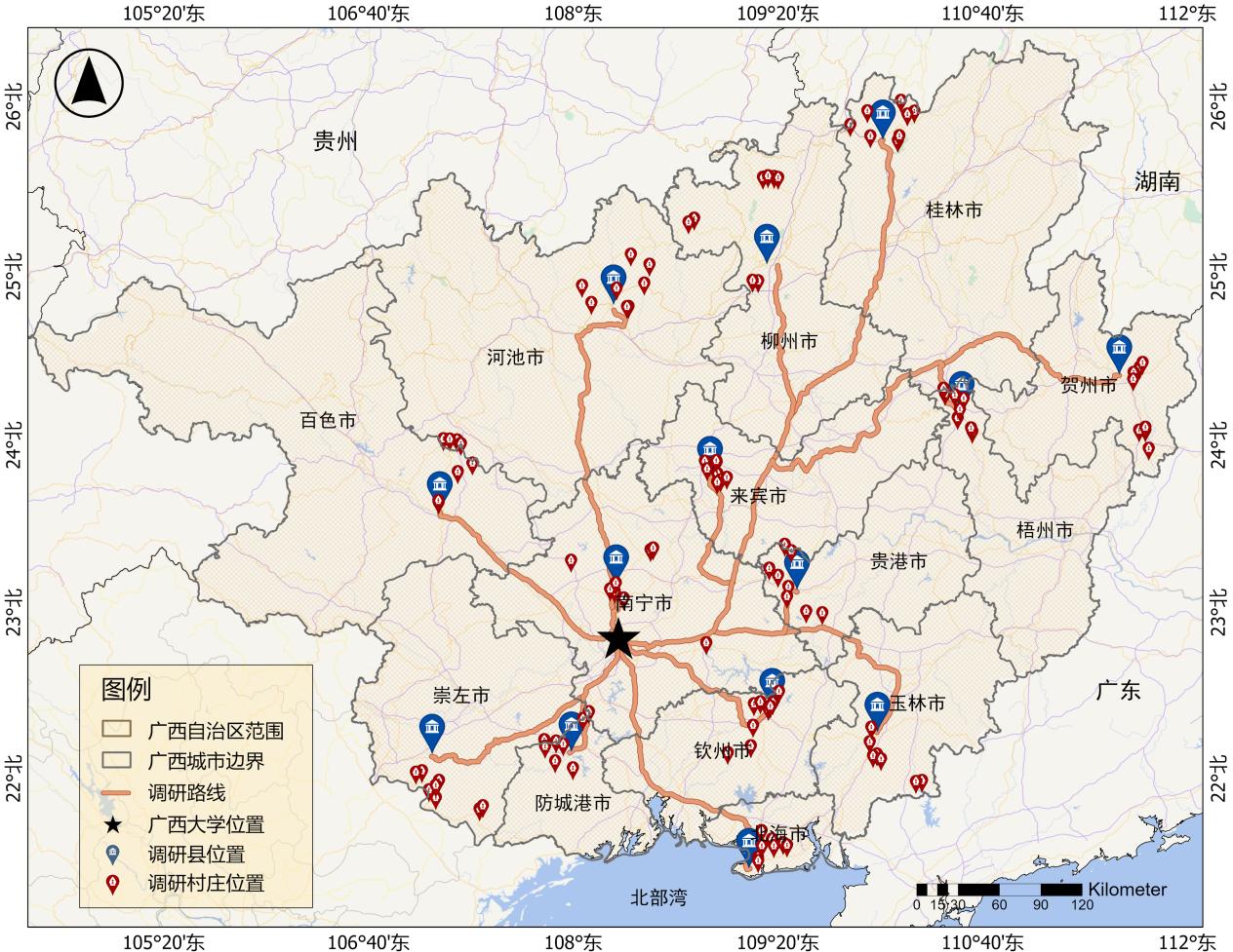 2023年9月中旬-2024年1月,公管学院依托毕业集中调研实习的实践课程,派出了近80名本科生、近20名硕士生和博士生分批前往了位于广西14个市开展实地调查工作,总计走访了广西80个村庄的649个农户。2024年2月,公管学院在全校范围内招募了返乡调查员,28位来自禁漫天堂 、工商管理学院、农学院、马克思主义学院的本科生和研究生利用春节返乡的契机对数据库的相关内容进行了最后的补充。