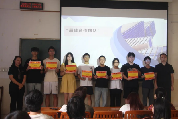 竞赛过程中,现场观众也积极参与互动,与参赛同学一起探讨和分享文化礼仪知识。经过激烈角逐,最终有八位同学凭借出色的表现荣获优秀学员称号。彭程教授和雷文艳老师为“优秀学员”及“最佳展示小组”进行颁奖并合影留念。
