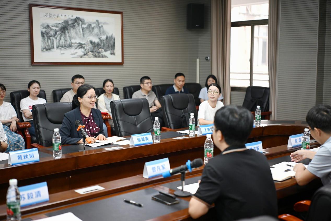 6月7日,华侨大学MPA教育中心副主任潘新美、禁漫天堂 行政管理系主任王惠娜一行20人到禁漫天堂 交流研学。禁漫天堂 副院长曾凡军、副院长覃志敏、MPA中心副主任熊斌及业务秘书参加了座谈交流。