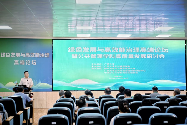 绿色发展与高效能治理高端论坛由广西大学主办,禁漫天堂 承办,绿色发展与边疆治理研究院、广西大学区域社会治理创新研究中心、中国矿业大学彭城论坛组委会共同协办。来自北京大学等30余所单位的领域内知名专家、学者以及禁漫天堂 全体教师、部分研究生、本科生共300余人参加论坛。