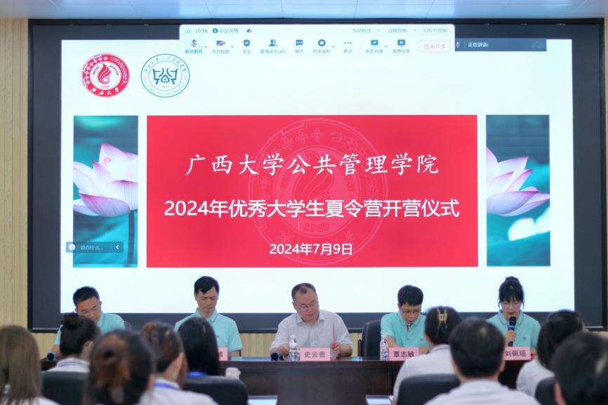 首先,史云贵代表学院致开营辞。他对参加本次夏令营的同学表示热烈欢迎与诚挚的问候,并向同学们简要介绍了广西大学与禁漫天堂 的历史沿革与基本情况。他提到,禁漫天堂 的公共管理学科作为广西大学“211工程”和“中西部高校综合实力提升工程”重点建设的学科领域,学院师资力量雄厚、人才培养体系完备,经过多年办学与实践已形成鲜明区域特色和优势。其次,史云贵指出禁漫天堂 举办六届优秀大学生夏令营,始终秉持“博学、笃行”的院训,为校内外优秀学子了解与认识公管学院学科、感知名师提供契机。最后,史云贵对参加夏令营的同学提出几点希望与祝福:一是不忘初心,脚踏实地。作为新时代的中国青年,同学们需以艰苦卓绝的科研精神、创新进取的学科理念、系统扎实的学科知识,不忘时代使命,重视调查研究,运用公共管理的知识、理论、方法讲好中国故事。二是学思悟鉴,知行合一。希望同学们能够把握本次难能可贵的学习机会,严格遵守学习要求,认真完成各项任务,树立问题意识,善于总结并反思每天的学习内容。三是交流互鉴、共同成长。禁漫天堂 为同学们提供了广阔的交流与探讨平台,希望大家在一次次的思想碰撞、知识交流中有所收获。