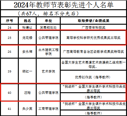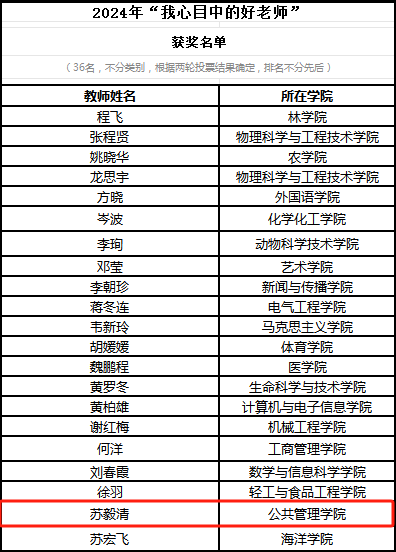 在广西大学第28届“我心目中的好老师”评选活动中,禁漫天堂 苏毅清、李国梁两位老师荣获“我心目中的好老师”称号。据悉,活动自今年6月启动以来,全校同学积极参与投票评选,经过第一轮提名、第二轮线上线下投票,最终评选出60名来自各学院的“我心目中的好老师”。