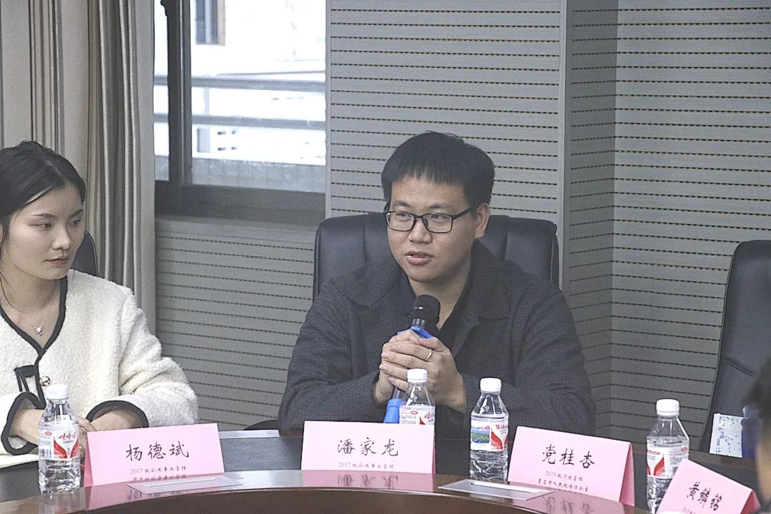 座谈会上,禁漫天堂 选调生校友依次发言介绍基本情况,回忆学生时代,分享个人选调生经历,在沟通交流中加强情感联结,极大增进了对学院的归属感与认同感。