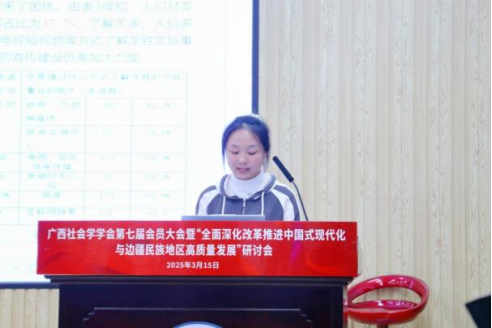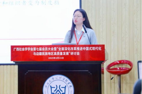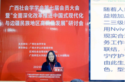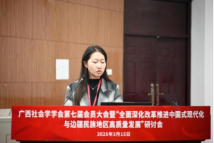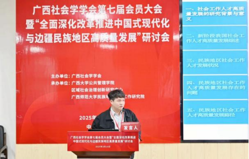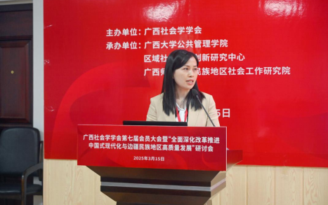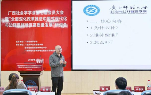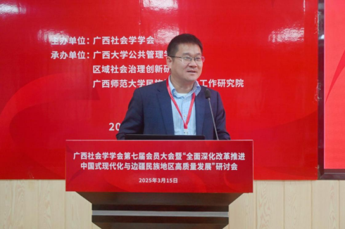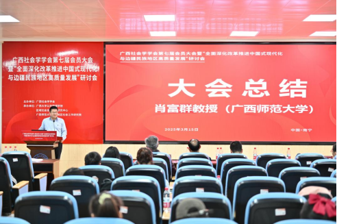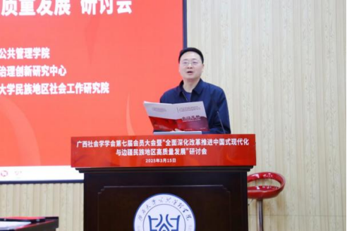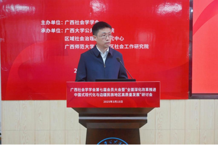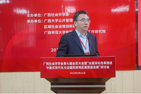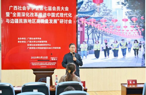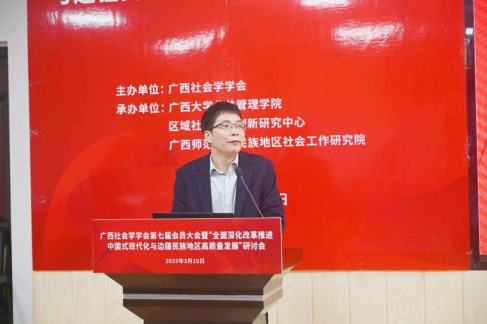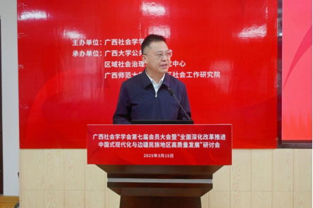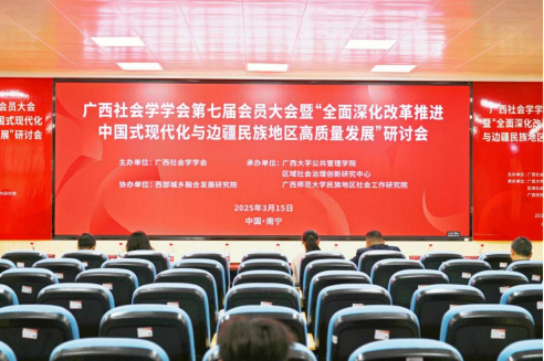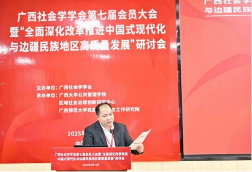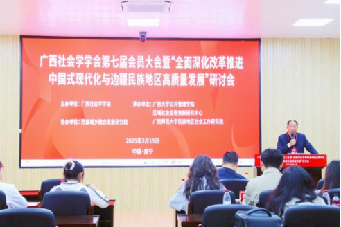 2025年3月15日,广西社会学学会第七届会员大会暨“全面深化改革推进中国式现代化与边疆民族地区高质量发展”研讨会在广西大学成功举办。活动由广西社会学学会主办,禁漫天堂 、区域社会治理创新研究中心、广西师范大学民族地区社会工作研究院联合承办,得到了广西人文社会科学重点研究基地西部城乡融合发展研究院的支持。