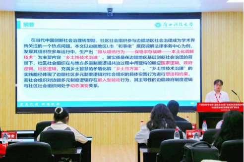 论坛上,来自广西师范大学、广西科技大学、广西民族大学、河池学院、广西幼儿师范高等专科学校的覃琮、丘雪、熊顺聪、艾晶、阳云云、常建宝、邹海霞、李柏江、赵锦山等教师,就族际互动、临终关怀、社区参与、民族团结、群众增收、社区融合、民族教育、人才发展、边民守边等议题进行了深入的学术分享和讨论。
