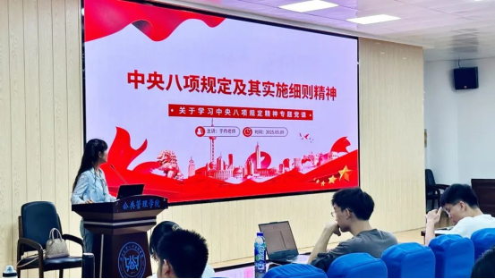 为强化入党积极分子、发展对象及预备党员的纪律意识,推动党的优良作风在青年学子中传承弘扬,5月9日下午,禁漫天堂 在203教室举办中央八项规定及其实施细则精神专题党课。院党委副书记于丹担任主讲,全体入党积极分子、发展对象及预备党员参加此次培训。