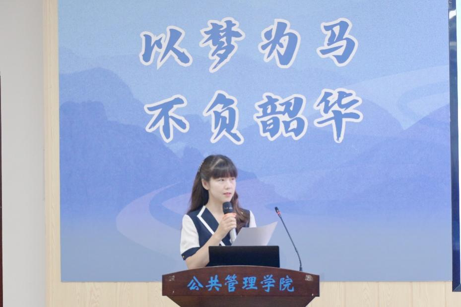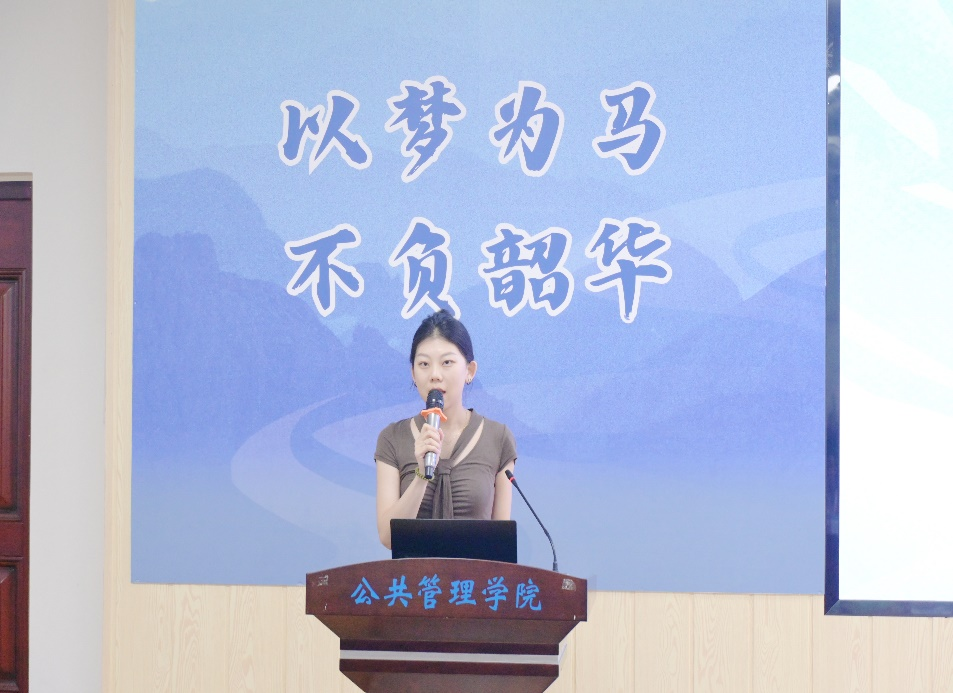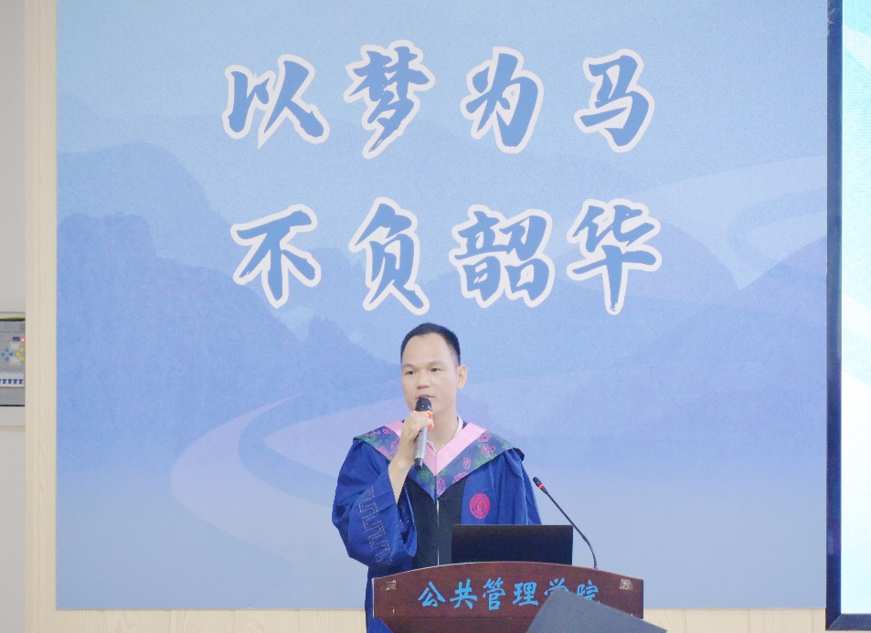 在校生代表王瑞贤向即将毕业的学长学姐致以诚挚祝贺与感谢。她表示,学长学姐们是学习的榜样,其平衡工作与生活的智慧、对公共管理初心的坚守,都给予他们深刻的启迪与力量,激励公管学子继续在公共管理领域砥砺前行。