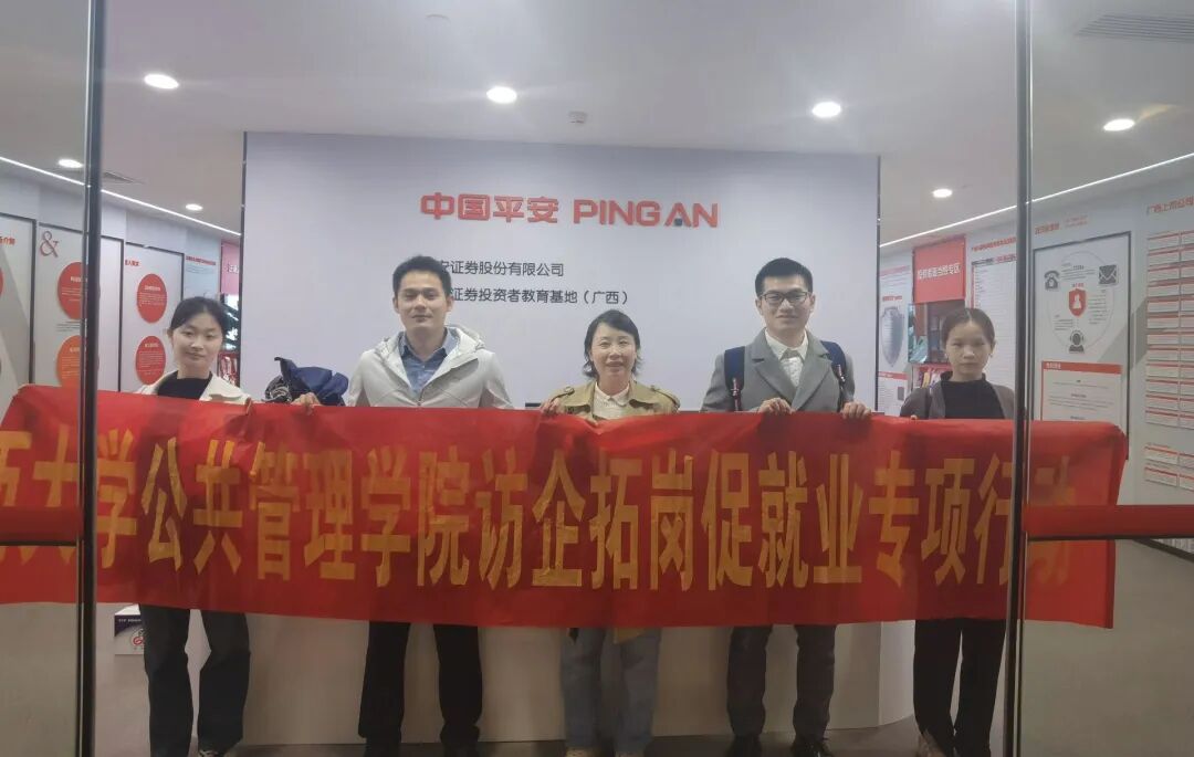 3月9日上午,禁漫天堂 组织师生代表前往广西途昊集团有限公司和平安证券股份有限公司广西分公司开展访企拓岗促就业专项行动。本次活动由学工组辅导员黄文静带队,多位学生代表共同参与,通过与行业资深从业者进行座谈与经验分享,为禁漫天堂 学子搭建直面行业前沿的交流平台,为他们进一步提高工作水平,顺利进入社会提供坚实基础。