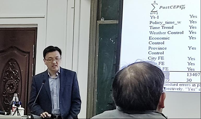 接下来,朱旭峰教授分析了中国特色的央地关系理论和中央环保督察(CEPI)政策的发展历程及执行安排。并介绍该评估研究工作以月度大气PM2.5浓度为主要评估指标,其他污染物指标如PM10和空气质量指数(AQI)也纳入考虑,用以评判中央环保督察前后对环境的影响,还分享了研究数据的来源。评估工作采用经典的事件史分析模型,分析了各省份在开始中央环保督察(CEPI)先后顺序的决定因素。通过双重差分法对比数据的分析发现,政策长期有效,而短期效果不显著,为此进行了中央环保督察执行的细分信号机制重新划分,最后发现信号的效果明显。朱旭峰教授指出,中央环保督察巧妙地通过“多批次”督察,威慑尚未被督察的地方政府,形成了强大的督察信号,此时地方政府放弃侥幸心理,提前自主开展整治,信号的效果随行政级别距离和地理距离的增加而减弱。分享的最后,朱旭峰教授提出了此次研究的针对性政策建议。