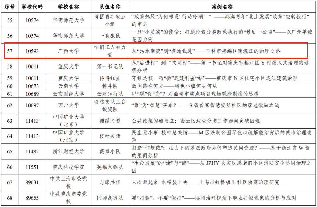 本届案例大赛共有来自186所院校的1884支队伍报名,经过案例提交、文本审查等环节,最终178所院校的1382支队伍提交有效案例。禁漫天堂 高度重视本次案例大赛,去年底专门召开赛前动员会,共有36支队伍报名提交了参赛案例,经过学院专家组的评分排序,最终选送22支队伍的案例参加本次中国研究生公共管理案例大赛。由禁漫天堂 苏毅清老师指导的参赛案例《从“污水南流”到“粪涌钱进”——玉林市福绵区南流江的治理之路》获得大赛得三等奖,禁漫天堂 也获“优秀组织奖”。