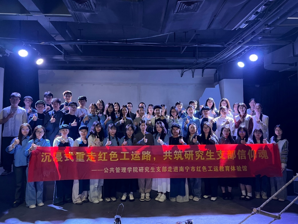 为将党史学习教育与沉浸式实践体验深度融合,11月8日禁漫天堂 研究生支部走进南宁市红色工运教育体验馆,开展以“沉浸式重走红色工运路,共筑研究生支部信仰魂”为主题的党建活动。活动通过参观学习、角色扮演、剧情互动等形式,让党员们在“亲历”南宁市电厂保卫战的红色工运史中深化理想信念,凝聚支部力量。
